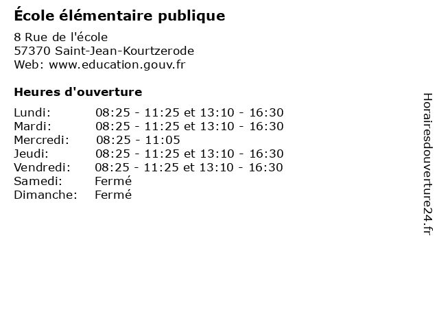 | Mardi | 08:25-11:25 et 13:10-16:30 |