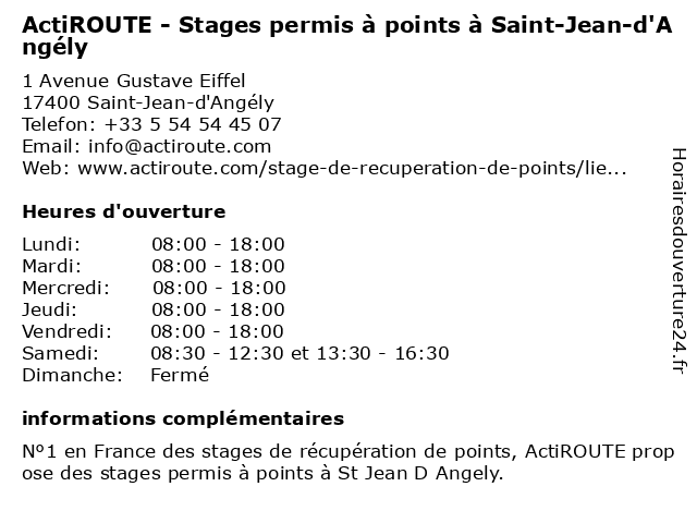 1 ActiROUTE - Stages permis à points à Saintes (Distance: 24,82 km) 1 Boulevard de Recouvrance, 17100 Saintes 4 points, actiroute, agréés, experts en sécurité routière, formation, n°1 en france, permis, permis de conduire, permis à points, points, psychologues, saintes, sensibilisation à la sécurité routière, stage de sensibilisation à la sécurité routière, stage permis probatoire, stage permis à points, stages, stages de récupération de points 2 ActiROUTE - Saintes (Distance: 25,09 km) 2 Place Geoffroy Martel, 17100 Saintes 4 points, actiroute, agréés, experts en sécurité routière, formation, n°1 en france, permis de conduire, permis à points, psychologues, saintes, sensibilisation à la sécurité routière, stage de sensibilisation à la sécurité routière, stage permis probatoire, stage permis à points, stages, stages de récupération de points 3 Mon Agence Automobile.fr (Distance: 25,41 km) 121 Rue Gauthier, 17100 Saintes agence, automobile.fr, experts, mon, professionnel, ventes, véhicules 4 Exco - Experts Comptables (Distance: 28,60 km) 1 avenue de Saintonge, 17430 Tonnay Charente cabinet, comptable, comptables, comptes, contrôles, exco, expertise, experts, finances, gestion, reporting 6 ActiROUTE - Stages permis à points à Rochefort (Distance: 32,47 km) 73 Rue Toufaire, 17300 Rochefort 4 points, actiroute, agréés, experts en sécurité routière, formation, n°1 en france, permis, permis de conduire, permis à points, points, psychologues, rochefort, sensibilisation à la sécurité routière, stage de sensibilisation à la sécurité routière, stage permis probatoire, stage permis à points, stages, stages de récupération de points |