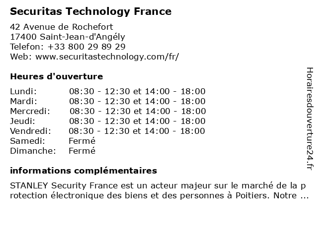 1 Auto Securitas - CCTA Périgord Alexandre (Distance: 27,79 km) 15 rue Nicolas Appert, 17250 Pont-l'Abbé-d'Arnoult alexandre, auto, ccta, contrôle, examen, périgord, securitas, technique, visite, véhicule 2 Auto Securitas - Contrôle Technique Echillaisien (Distance: 33,68 km) 102 rue des Erronnelles, 17620 Échillais auto, contrôle, echillaisien, examen, securitas, technique, visite, véhicule 3 Auto Securitas - Contrôle Technique du Marais Poitevin (Distance: 42,64 km) 2 allée de l'Artisanat, 79460 Magné auto, contrôle, du, examen, marais, poitevin, securitas, technique, visite, véhicule 4 Securitas France SARL (Distance: 45,86 km) Boulevard François Arago, 79180 Chauray analyse des risques, entreprise, formation, france, lme, offre, pme, protective services, risk management, sarl, securitas, service à distance, solutions, sécurité, sécurité mobile, sécurité électronique, sûreté, technologie, télésurveillance, vidéosurveillance 5 Securitas Surveillance (Distance: 45,99 km) - Boulevard François Arago, 79180 Chauray alarme, entreprise, privé, securitas, surveillance, sécurité 6 Auto Securitas - La Rochelle Auto Contrôle (Distance: 50,90 km) 18 Rue Aristide Bergès, 17180 Perigny auto, autosecuritas, contrôle, examen, la, rochelle, securitas, technique, visite, véhicule |