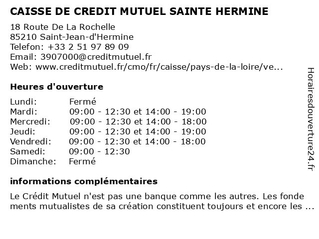 Termes de recherche pour CAISSE DE CREDIT MUTUEL SAINTE HERMINE:sainte, de, crédit, mutuel, caisse, hermine |
