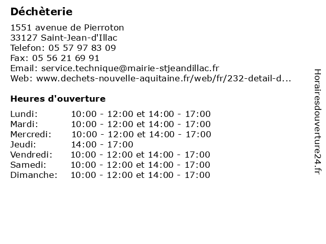 | Mercredi | 10:00-12:00 et 14:00-17:00 |