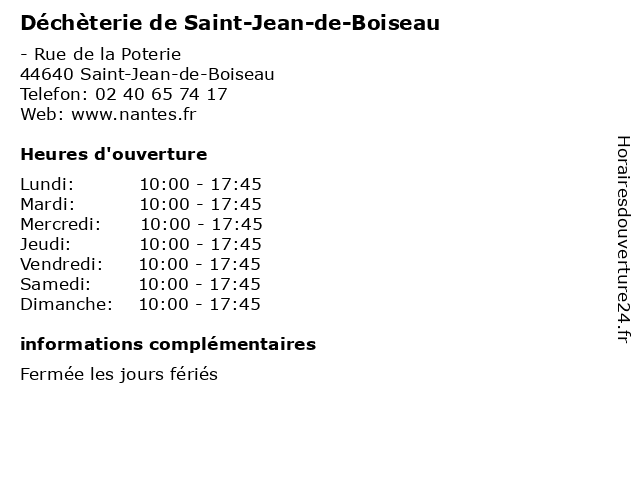 | Mercredi | 10:00-17:45 |