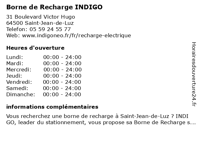 1 Borne de Recharge INDIGO (Distance: 0,23 km) 2 Avenue De Verdun, 64500 Saint-Jean-de-Luz borne, de, indigo, recharge 2 Borne de Recharge INDIGO (Distance: 0,42 km) 8 Rue Vincent Barjonnet, 64500 Saint-Jean-de-Luz borne, de, indigo, recharge 3 Borne de Recharge INDIGO (Distance: 13,05 km) 2 Place Sainte-eugénie, 64200 Biarritz borne, de, indigo, recharge 4 Borne de Recharge INDIGO (Distance: 13,05 km) 12 Avenue François Mauriac, 64200 Biarritz borne, de, indigo, recharge 5 Borne de Recharge INDIGO (Distance: 13,15 km) 16 Avenue Du Maréchal Foch, 64200 Biarritz borne, de, indigo, recharge 6 Borne de Recharge INDIGO (Distance: 13,26 km) 15 Place Georges Clemenceau, 64200 Biarritz borne, de, indigo, recharge |