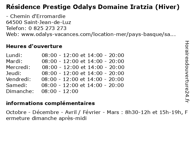 | Samedi | 08:00-12:00 et 14:00-20:00 |