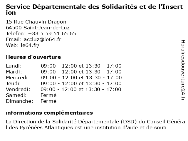 | Lundi | 09:00-12:00 et 13:30-17:00 |