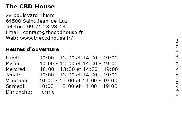 | Samedi | 10:00-13:00 et 14:00-19:00 |
