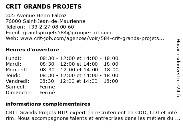 | Lundi | 08:30-12:00 et 14:00-18:00 |