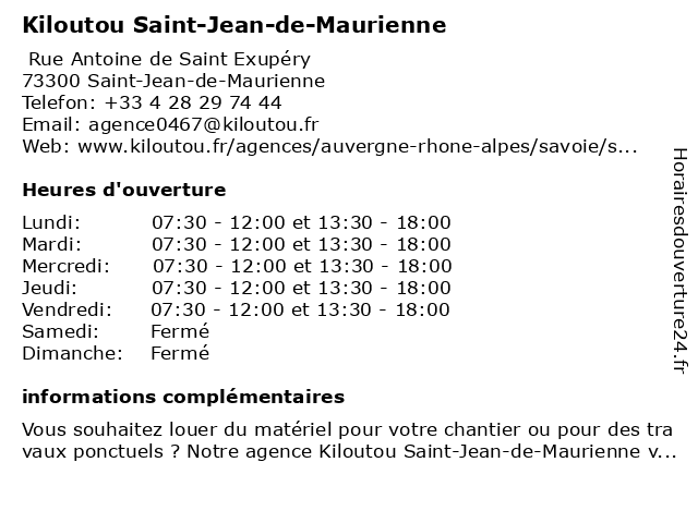 | Lundi | 07:30-12:00 et 13:30-18:00 |