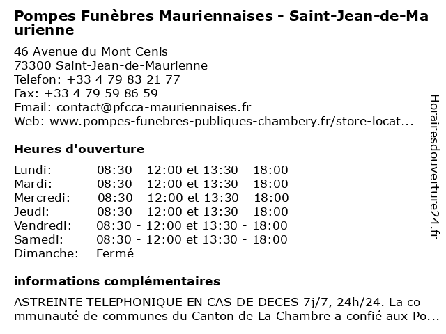 1 Pompes Funèbres Mauriennaises - agence de Saint-Jean-de-Maurienne (Distance: 0,01 km) 46 Avenue du Mont Cenis, 73300 Saint-Jean-de-Maurienne agence, de, funèbres, jean, mauriennaises, maurienne, pompes, saint 2 Pompes Funèbres Marbrerie Faure (Distance: 1,10 km) 262 Rue du Parquet, 73300 Saint-Jean-de-Maurienne faure, funèbres, marbrerie, pompes 3 Menuiseries Mauriennaises (Distance: 26,43 km) 89 Rue Roc Rouge, 73500 Modane mauriennaises, menuiseries 4 Pompes Funèbres Mauriennaises - Marbrerie - Agence de Modane (Distance: 26,70 km) 700 Cours Aristide Briand, 73500 Modane agence, de, funèbres, marbrerie, mauriennaises, modane, pompes 5 PFG Services Funéraires (Distance: 30,88 km) 2 Rue Docteur Charvet, 38530 Pontcharra funeraires, funéraires, marbrerie, pfg, plaque funéraire, pompes funèbres, services 6 Pompes Funèbres Intercommunales de la Région Grenobloise (Distance: 33,20 km) . Zone pré million, 38660 La Terrasse articles, de, funèbres, funérailles, grenobloise, intercommunales, la, marbrerie, pompes, produit, région, service |