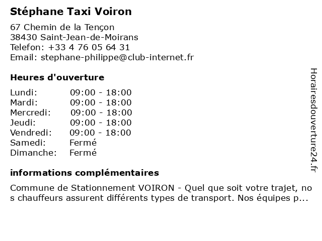 1 Taxi Philippe Emilia (Distance: 0,04 km) 67 chemin Tençon, 38430 Saint jean de moirans emilia, philippe, taxi 2 FCVM - Football Club Voiron Moirans (Distance: 2,32 km) 567 Rue du Vercors, 38500 Coublevie club, coublevie, fcvm, football, moirans, voiron 4 ORIENTACTION - Voiron (Distance: 3,22 km) 229 Lotissement d'Orgeoise, 38500 Coublevie orientaction, voiron 6 COUBLEVIE TAXI (Distance: 4,99 km) 9022 r Marais Zone Industrielle Des Blanchisse, 38500 Voiron coublevie, taxi  |