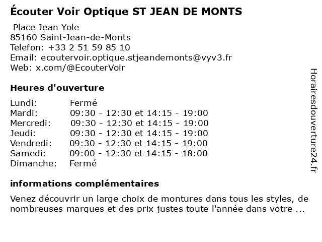 | Mardi | 09:30-12:30 et 14:15-19:00 |