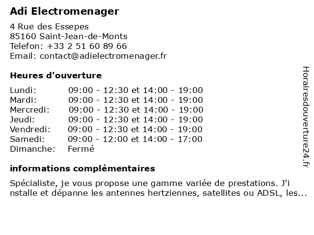 Lundi | 09:00-12:30 et 14:00-19:00 |