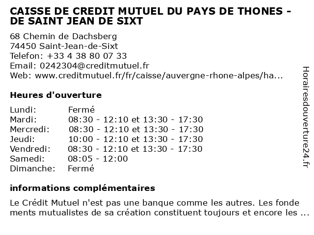 Termes de recherche pour CAISSE DE CREDIT MUTUEL DU PAYS DE THONES - DE SAINT JEAN DE SIXT:du, de, saint, jean, thones, crédit, mutuel, caisse, pays, sixt |