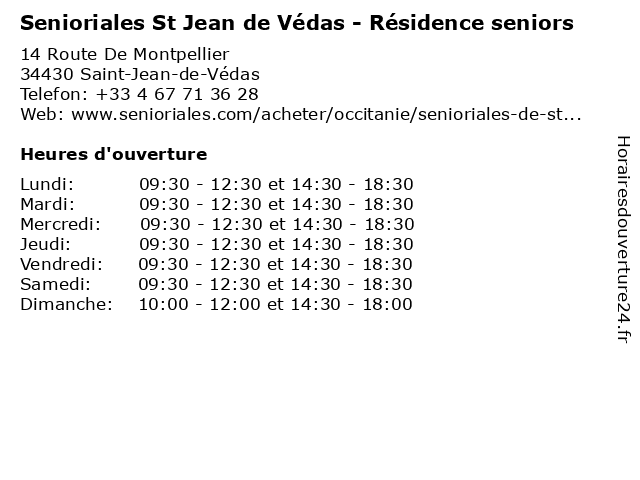 1 Senioriales de Juvignac - Résidence seniors (Distance: 4,87 km) 107 Rue Jupiter, 34990 Juvignac de, juvignac, résidence, senioriales, seniors 2 Résidence Le Terral*** - Vacancéole (Distance: 1,53 km) 920 Route De Sète, 34430 Saint-Jean-De-Védas le, résidence, terral***, vacancéole 3 Résidence seniors - Le Pré Fleuri (Distance: 2,17 km) 34 avenue des dragées, 34070 Montpellier fleuri, le, pré, résidence, securite, seniors, vie sociale 4 Résidence La Cyprière (Distance: 4,35 km) 14 Chemin de la Plaine, 34990 Juvignac cyprière, la, résidence 5 Résidence étudiante Resid’Oc II - UXCO (Distance: 4,42 km) 57 rue Favre de St-Castor, 34080 Montpellier ii, logements, resid’oc, résidence, uxco, écoles, élèves, étudiante 6 Résidence étudiante Studéa Montpellier Pilory (Distance: 4,50 km) 765 Rue du Pilory, 34080 Montpellier montpellier, pilory, résidence, studéa, étudiante |