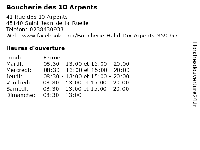 | Samedi | 08:30-13:00 et 15:00-20:00 |