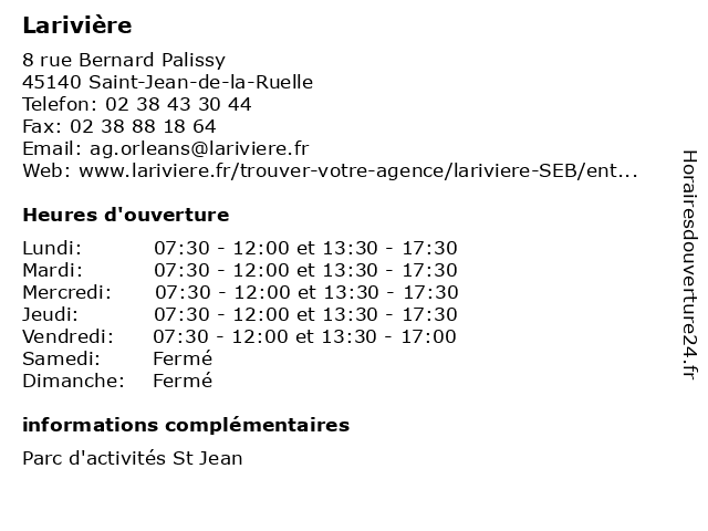 | Lundi | 07:30-12:00 et 13:30-17:30 |