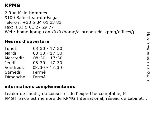 1 KPMG (Distance: 40,80 km)16 Rue du Quai, 09200 Saint-Girons kpmg