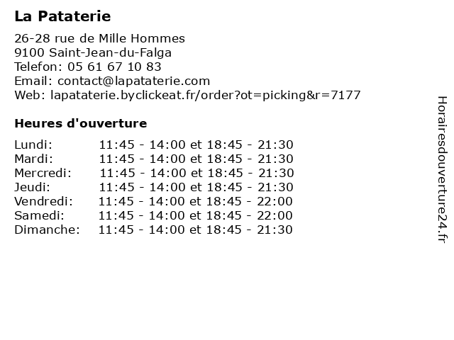 | Samedi | 11:45-14:00 et 18:45-22:00 |