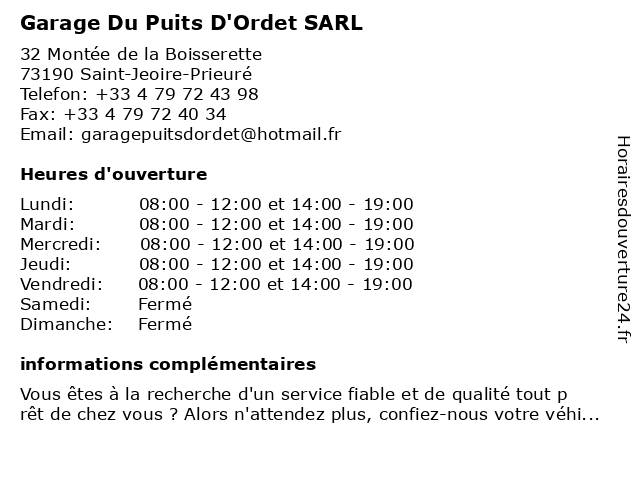| Mercredi | 08:00-12:00 et 14:00-19:00 |