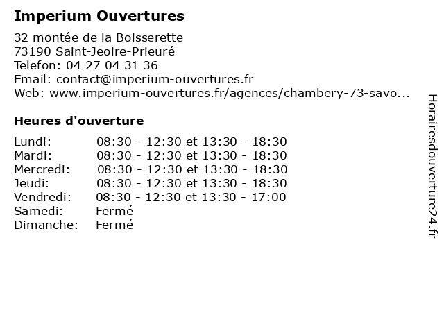 | Lundi | 08:30-12:30 et 13:30-18:30 |