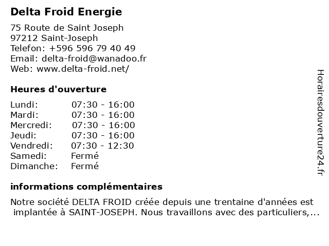 2 Froid Clim Assistance Caraïbes (Distance: 3,41 km) Chemin Basse Gondeau, 97232 Le Lamentin assistance, caraïbes, clim, froid 3 Carrefour De l'Energie (Distance: 4,40 km) lotissement Bardinet Dillon Qua Dillon, 97200 Fort de france carrefour, de, l'energie 4 Froid Mat Climatisation (Distance: 4,69 km) Californie Imm Camatchy, 97232 Lamentin (le) climatisation, froid, mat 6 PLUTON ENERGIE (Distance: 11,42 km) Rivière Blanche 7.5 km Rte de Saint-Joseph, 97212 Saint joseph energie, pluton |