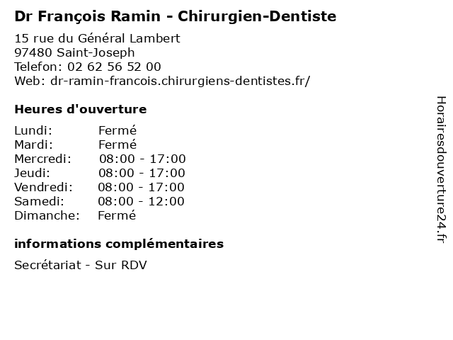| Dimanche | Fermé |