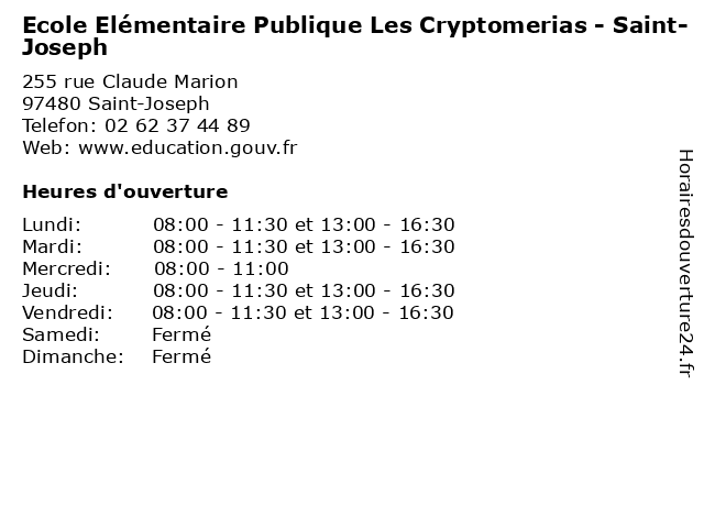 | Mardi | 08:00-11:30 et 13:00-16:30 |