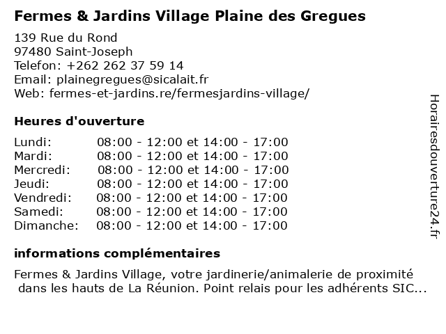 | Mercredi | 08:00-12:00 et 14:00-17:00 |