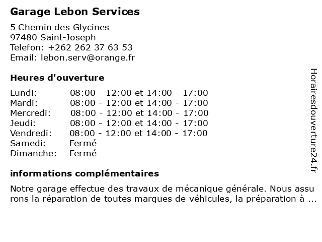 Lundi | 08:00-12:00 et 14:00-17:00 |