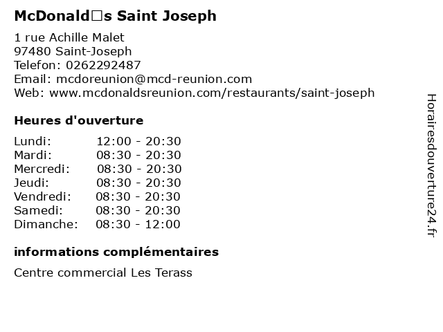 Termes de recherche pour McDonald’s Saint Joseph:restaurant, saint, fast food, menus, cuisine, mcdonald’s, joseph, burgers, repas |