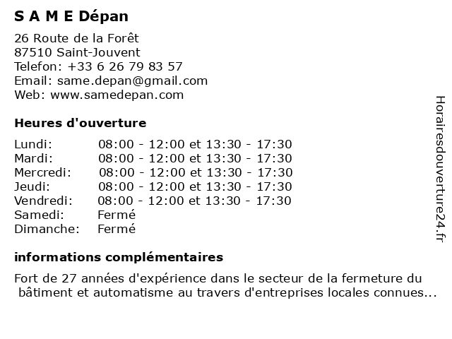 | Samedi | Fermé |