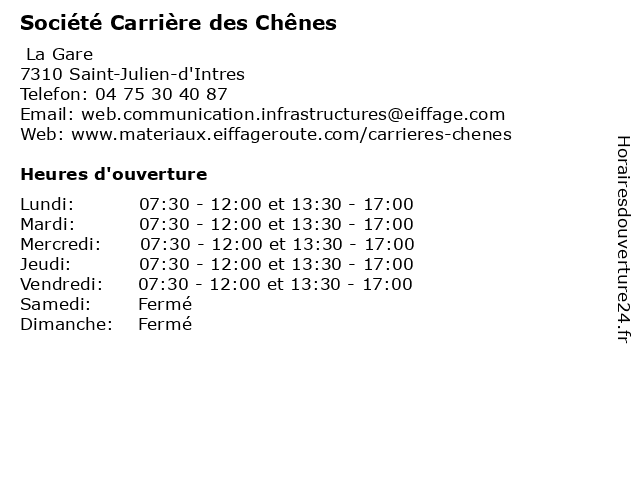 | Lundi | 07:30-12:00 et 13:30-17:00 |