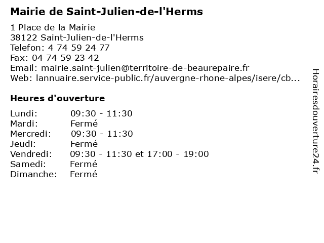Termes de recherche pour Mairie de Saint-Julien-de-l'Herms:de, saint, julien, administration, mairie, assoc public, l'herms |