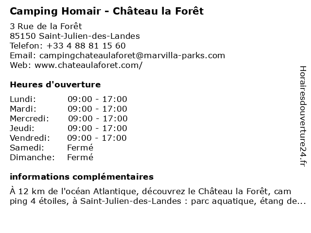 Termes de recherche pour Camping Homair - Château la Forêt:la, chateau, foret, camping, location de mobil-home, camping avec piscine, camping 4 étoiles, camping avec parc aquatique, camping club enfants, camping animation, camping au chateau, camping avec piscine couverte, camping avec toboggan aquatique, camping château la forêt, camping marais poitevin, camping pays de la loire, camping saint julien des landes, camping vendée, homair |