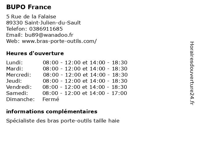 | Lundi | 08:00-12:00 et 14:00-18:30 |