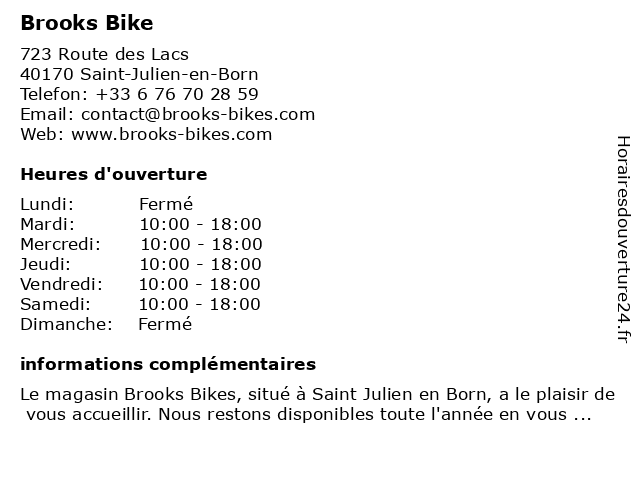 1 Atlantic Bike Legend (Distance: 22,56 km) . Rue de Gascogne, 40260 Castets atlantic, bike, concessionnaire, entretien, legend, motos, vente 4 Bike Shop by Freelandes (Distance: 43,30 km) 17 Route de Saint-Vincent, 40230 Tosse bike, by, freelandes, shop 5 MAA Bikes - Jerry Bike Rental (Distance: 49,05 km) 75 Avenue Georges Pompidou, 40130 Capbreton accessoires, bike, bikes, jerry, maa, magasin, rental, sport, vélos 6 |