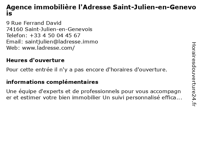 | Appeler Agence immobilière l'Adresse Saint-Julien-en-Genevois | |