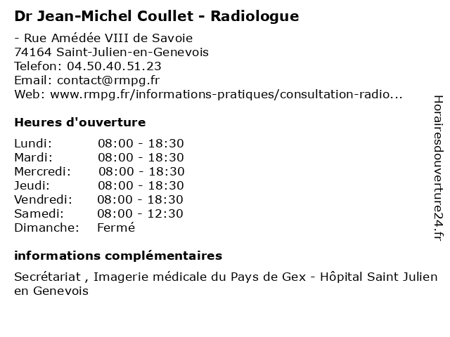 1 Dr Jean-Michel Coullet - Radiologue (Distance: 11,13 km) 110 Rue Germaine Tillion, 01630 Saint-Genis-Pouilly coullet, diagnostique, dr, imagerie, jean, michel, radiologie, radiologue, thérapeutique 3 Dr Florent Michel - ORL et chirurgien cervico-facial - secrétariat (Distance: 11,92 km) 17 Avenue Pierre Mendès France, 74100 Annemasse cervico, chirurgien, consultation, docteur, dr, et, facial, florent, med, michel, médecin, médecine, orl, secrétariat, traitement 5 Vez Jean-Francois Michel (Distance: 12,52 km) 228 Route Des Marlis, 01280 Prevessin Moens francois, jean, michel, restaurants, vez 6 Prunier-Michel Anne-Sophie - Psychologue/Psychothérapeute (Distance: 13,48 km) 41 Rue Du Chablais, 74100 Annemasse anne, michel, prunier, psychanalyste, psychologue, psychologue/psychothérapeute, psychothérapeute, sophie, thérapie |