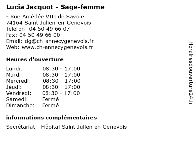 1 Dr Lucia Ciortea - Médecin généraliste (Distance: 12,01 km) 105 Place Jean Monnet, 01630 Saint-Genis-Pouilly ciortea, dr, généraliste, lucia, médecin, médecine, médical, pharmaceutique, traitement 2 Dr Sophie Jacquot-Laperriere - Chirurgien de la face et du cou (Distance: 23,20 km) 645 Route de Champ Farcon, 74370 Argonay chirurgie, chirurgien, cou, de, dr, du, et, face, general, jacquot, la, laperriere, soins, sophie 3 Erwann Jacquot - Ostéopathe (Distance: 23,58 km) 4a Allée de la Mandallaz, 74370 Metz-Tessy erwann, jacquot, osteo, osteopathe, ostéopathe, sante, soins 4 Anne-Laure Azam - Sage-femme (Distance: 0,00 km) - Rue Amédée VIII de Savoie, 74164 Saint-Julien-en-Genevois anne, azam, consultation, docteur, dr, femme, laure, med, médecin, sage, traitement 5 Aurélie Barret - Sage-femme (Distance: 0,00 km) - Rue Amédée VIII de Savoie, 74164 Saint-Julien-en-Genevois aurelie, aurélie, barret, consultation, docteur, dr, femme, med, médecin, sage, traitement 6 Johanna Bardonnex - Sage Femme (Distance: 3,77 km) 48 Route de Présilly, 74160 Feigères aide, bardonnex, bébé, bébés, femme, johanna, parturition, sage, sage-femme |