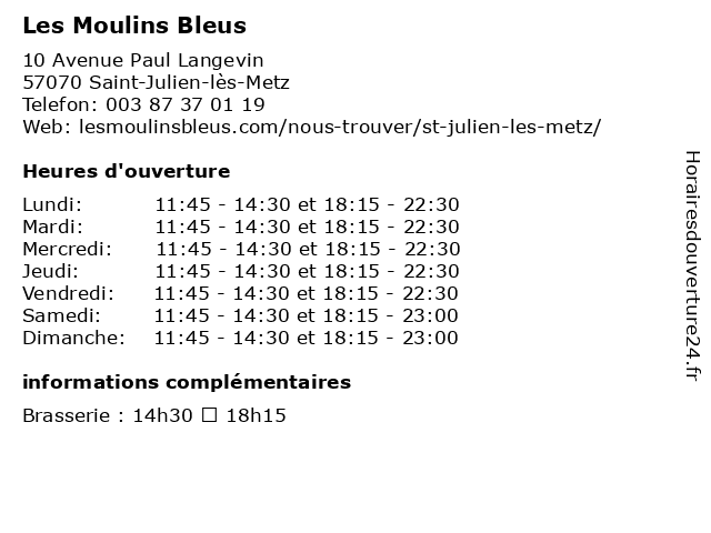 | Mardi | 11:45-14:30 et 18:15-22:30 |