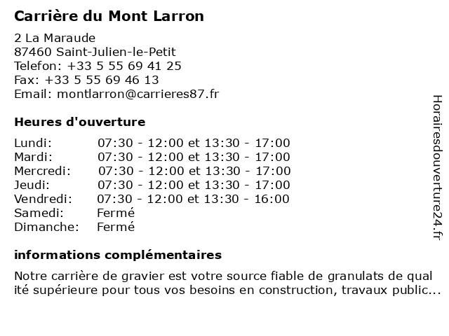 | Lundi | 07:30-12:00 et 13:30-17:00 |