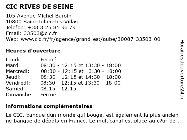 | Mercredi | 08:30-12:15 et 13:30-18:00 |