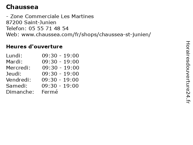 1 Chaussea (Distance: 26,37 km) 39 Bis Avenue Garibaldi, 87000 Limoges cafe, chaussea, chaussures, enfants, homme, lingerie, mode femme, restaurant, service, shopping 2 Chaussea (Distance: 31,94 km) - Zac Les Garennes, 87110 Le Vigen accessoires, chaussea, chaussures, mode 3 La Halle aux Chaussures (Distance: 0,54 km) - Zone industrielle la Croix Blanche, 87200 Saint-Junien aux, chaussure, chaussures, halle, la, maroquinerie, vetement 4 La Halle (Distance: 0,93 km) 5 Avenue Nelson Mandela, 87200 SAINT JUNIEN accessoires, bons plans, chaussures, chemise, halle, la, la halle, maroquinerie, mode bébé, mode enfant, mode femme, mode homme, pantalon, pas cher, petits prix, promotions, prêt à porter, pull, robe, t shirt, veste, vêtements 5 GEMO SAINT JUNIEN Chaussures et Vêtements (Distance: 0,92 km) Avenue Nelson Mandela, 87200 Saint-Junien bijoux et accesoires, chaussures, et, gemo, junien, lingerie, magasin bébé, maroquinerie, mode et habillement, saint, vêtements, vêtements bébé, vêtements enfant, vêtements femme, vêtements homme 6 Intersport (Distance: 0,95 km) n/a Avenue Nelson Mandela, 87200 Saint Junien beaute, chaussures, decoration, intersport, mode enfants, mode femme, mode homme, restauration, service, sport |