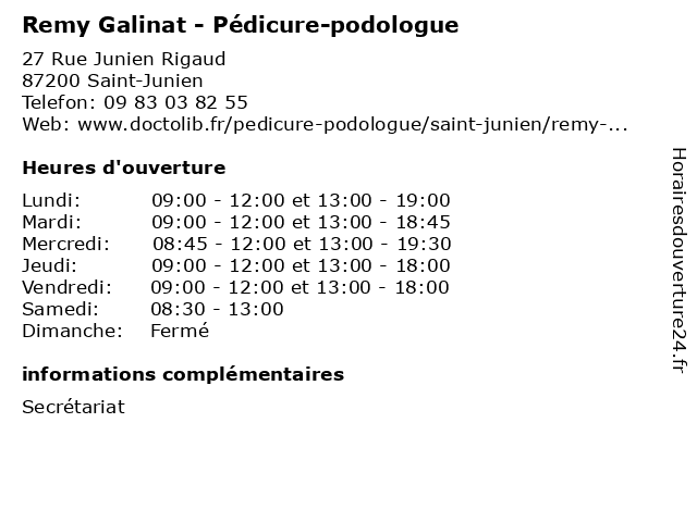 | Mercredi | 08:45-12:00 et 13:00-19:30 |