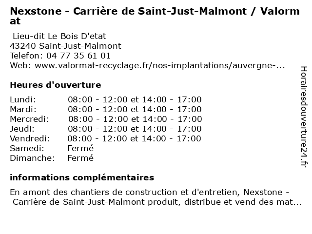 Termes de recherche pour Nexstone - Carrière de Saint-Just-Malmont / Valormat:de, saint, just, carriere, malmont, valormat, fournisseur de matériaux pour le bâtiment, nexstone, fournisseur de sable et gravier |