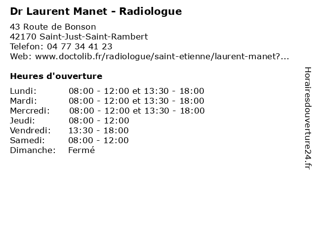 1 Dr Laurent Manet - Radiologue (Distance: 2,55 km) 16 Rue Aristide Briand, 42160 Andrézieux-Bouthéon consultation, docteur, dr, laurent, manet, med, médecin, radiologue, traitement 2 Dr Laurent Manet - Radiologue (Distance: 12,89 km) 11 Avenue de la Gare, 42700 Firminy consultation, docteur, dr, laurent, manet, med, médecin, radiologue, traitement 3 Dr Laurent Manet - Radiologue (Distance: 15,47 km) 21 Boulevard Karl Marx, 42100 Saint-Étienne consultation, docteur, dr, laurent, manet, med, médecin, radiologue, traitement 4 Dr Laurent Manet - Radiologue (Distance: 15,48 km) 39 Boulevard de la Palle, 42100 Saint-Étienne consultation, docteur, dr, laurent, manet, med, médecin, radiologue, traitement 5 Dr Laurent Manet - Radiologue (Distance: 15,73 km) 248 Place de la République, 42210 Montrond-les-Bains consultation, docteur, dr, laurent, manet, med, médecin, radiologue, traitement 6 |