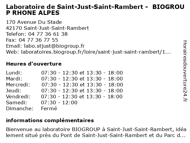 Termes de recherche pour Laboratoire de Saint-Just-Saint-Rambert - BIOGROUP RHONE ALPES:de, saint, just, rambert, laboratoire, alpes, rhone, biogroup, dépistages, laboratoire de diagnostic |