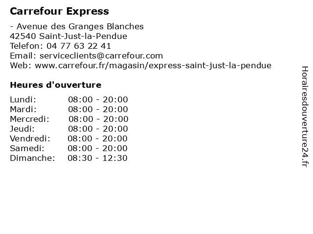 1 Carrefour Express (Distance: 14,88 km) 6 Avenue Charles de Gaulle, 69170 Tarare alimentation, carrefour, express, magasin discount, market, supermarché 2 Carrefour Drive Express (Distance: 0,00 km) - Avenue des Granges Blanches, 42540 Saint-Just-la-Pendue carrefour, drive, express, hypermarche, marche, market 3 Carrefour Station Service (Distance: 0,01 km) . Avenue Granges Blanches, 42540 Saint-Just-la-Pendue automobiles, carrefour, oil, service, services, station, stations essences 4 Carrefour Market (Distance: 12,27 km) 1 Avenue Jean Moos, 69550 Amplepuis alimentation, carrefour, magasin discount, market, supermarché 5 Carrefour Drive Market (Distance: 12,27 km) . Avenue Jean Moos, 69550 Amplepuis carrefour, drive, hypermarche, marche, market 6 Carrefour Station Service (Distance: 17,80 km) . Route de Saint Etienne, 42110 Feurs automobiles, carrefour, oil, service, services, station, stations essences |
