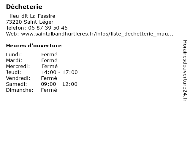 1 Déchèterie (Été) (Distance: 6,86 km) route nationale 6, 73480 Lanslebourg bennes, collecte, déchets, déchèterie, détritus, gravats, tri, été 2 Déchèterie (Distance: 8,85 km) - lieu-dit Le Bugeon, 73130 La Chambre bennes, collecte, déchets, déchèterie, détritus, gravats, tri 3 Déchèterie (Hiver) (Distance: 10,51 km) - lieu-dit Les Iles, 73130 Saint-Etienne-de-Cuines bennes, collecte, déchets, déchèterie, détritus, gravats, hiver, tri 4 Déchèterie (Été) (Distance: 10,51 km) - lieu-dit Les Iles, 73130 Saint-Etienne-de-Cuines bennes, collecte, déchets, déchèterie, détritus, gravats, tri, été 5 Déchèterie (Distance: 12,20 km) - Louise Dufour, 73110 Villard-Sallet déchèterie, gravats, huiles usées, la réception des déchets et écocentres, les appareils électroménagers, les déchets verts, papier et carton en quantité 6 Déchèterie (Hiver) (Distance: 12,69 km) - ZA de la Grande Bellavarde, 73390 Chamoux-sur-Gelon collecte, déchets, déchèterie, détritus, gravats, hiver, tri |