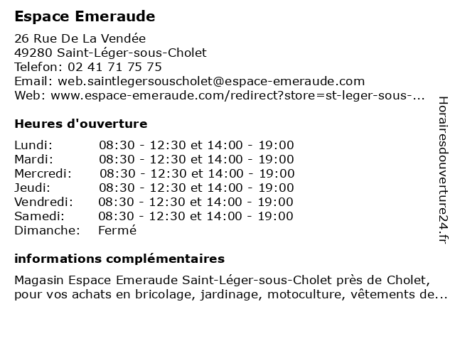 1 Espace Emeraude (Distance: 0,03 km) 39 Rue De La Vendée, 49280 Saint-Léger-sous-Cholet concessionnaire de remorques, emeraude, espace, fournisseur de matériel agricole, magasin de vêtements de travail, réparation de tondeuses à gazon, vente de tondeuses à gazon, équipements pour pelouse et jardin 2 Espace Revêtements (Distance: 3,32 km) 126 Boulevard de Strasbourg, 49300 Cholet espace, mur, peinture, revêtements, rideaux, specialiste sol 3 Espace Aubade (Distance: 4,19 km) 150 Avenue du Maréchal Leclerc, 49300 Cholet aménagement, aubade, equipement, espace, mobilier 4 Pharmacie Espace Marne (Distance: 4,30 km) 12 Avenue de la Marne, 49300 Cholet conseil, espace, marne, médicaments, pharmacie, santé, soin 5 Espace SFR (Distance: 5,08 km) 134 Rue de la Girardiere, 49300 Cholet beaute, cafe, chaussures, enfants, espace, lingerie, mode femmes, mode hommes, restaurant, sfr, sport 6 Easy Cash - Espace Achetez (Distance: 5,21 km) 7 Rue Sorel Tracy, 49300 Cholet achetez, bijouterie, cash, cultura, easy, espace, loisirs, luxe, multimedia |